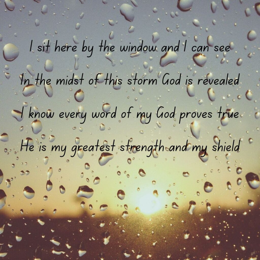 Sometimes I sit by the window and watch the rain. The beauty in a springtime shower fills me with appreciation for God’s creation. The sights and sounds and smells of the rain fill my senses and remind me of the strength and majesty of God. Our God, who has the power to direct the winds and send the rains to water the earth and turn everything green and new again. This same God loves us and promises us his protection if only we come to him and ask. From the beginning of creation the earth has known his name, and his son’s name. For Jesus has been with us from the beginning, loving us from above. He is our strength and our shield, protecting us in times of trouble.