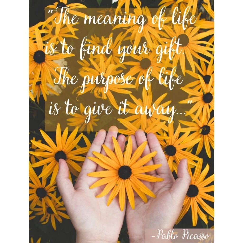 What are your gifts? No matter how you choose to interpret this question, I think this quote gives us some wise advice about how we should live our life. Discover what you’re good at. Then find ways to use these gifts for the benefit of others…